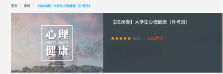 2、课程名称:【2026春】大学生心理健康(补考班)